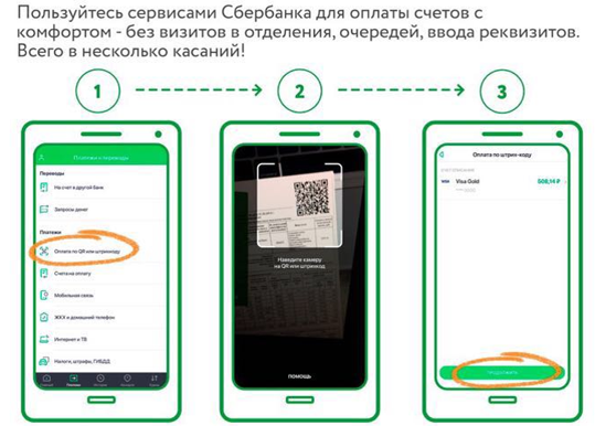 Быстрая и безопасная оплата через QR-код в мобильном приложении Сбер Онлайн. Просто наведите камеру на код и подтвердите платеж.